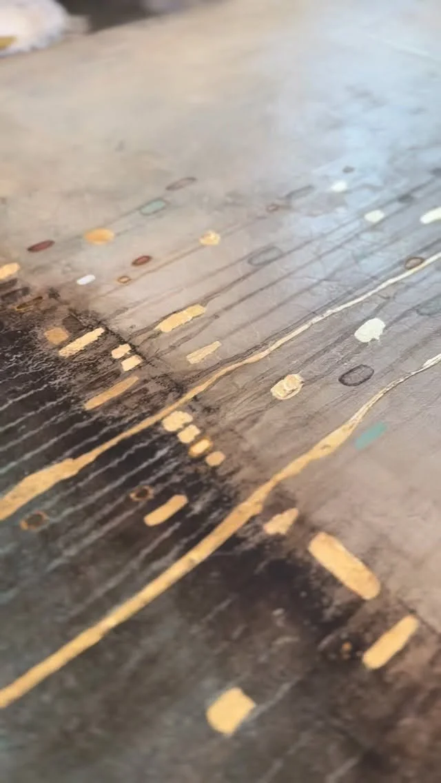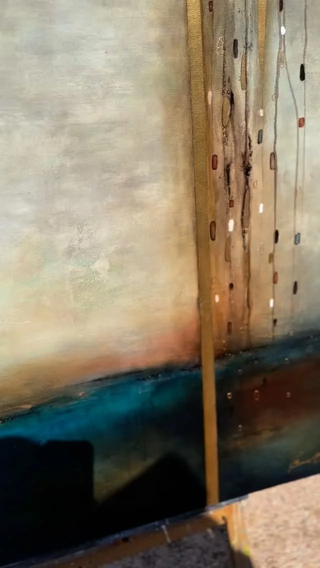 Beverley Wolter is a contemporary abstract artist whose paintings transcend the elemental beauty of ocean and desert—where shimmer meets sediment, and movement gives way to stillness. Her work invites the viewer to shift perspective: to wander from afar within its expansive calm, then draw near to discover intricate “cell” details—delicate microstructures that glimmer like visual jewelry.
